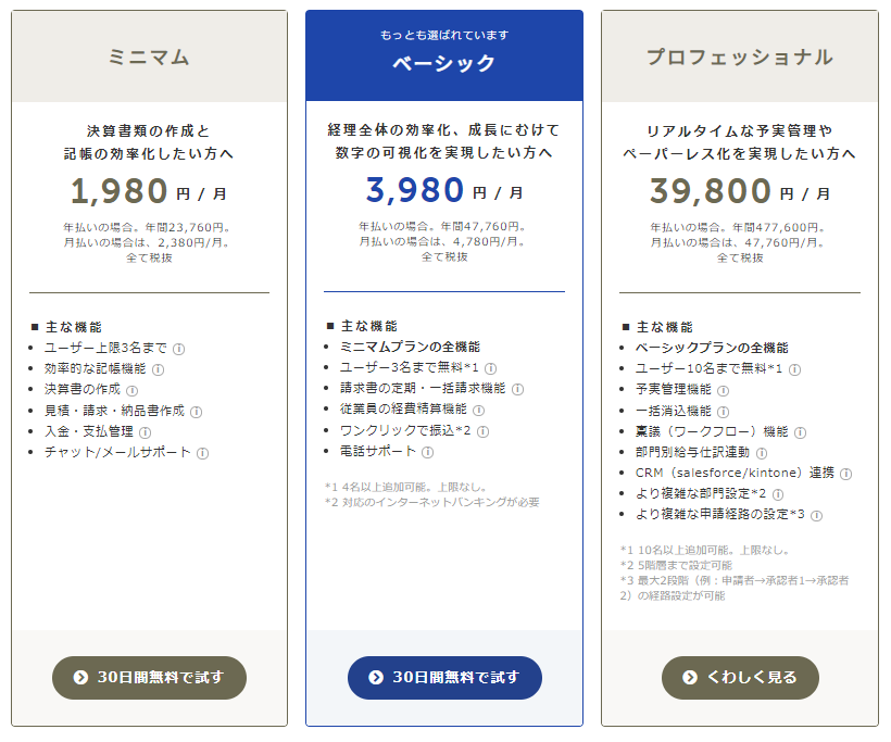 法人向けのfreee会計の料金プランは、1,980円/月~となっております。