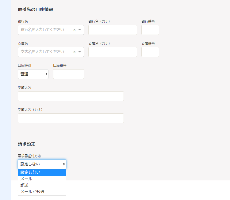 取引先の設定から、取引先ごとに請求書送付方法を登録しておきましょう。