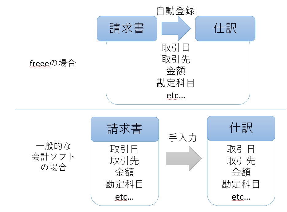 請求書を見ながら、同じ内容を会計ソフトに転記する、という作業が不要となり、転記ミスも防げます。