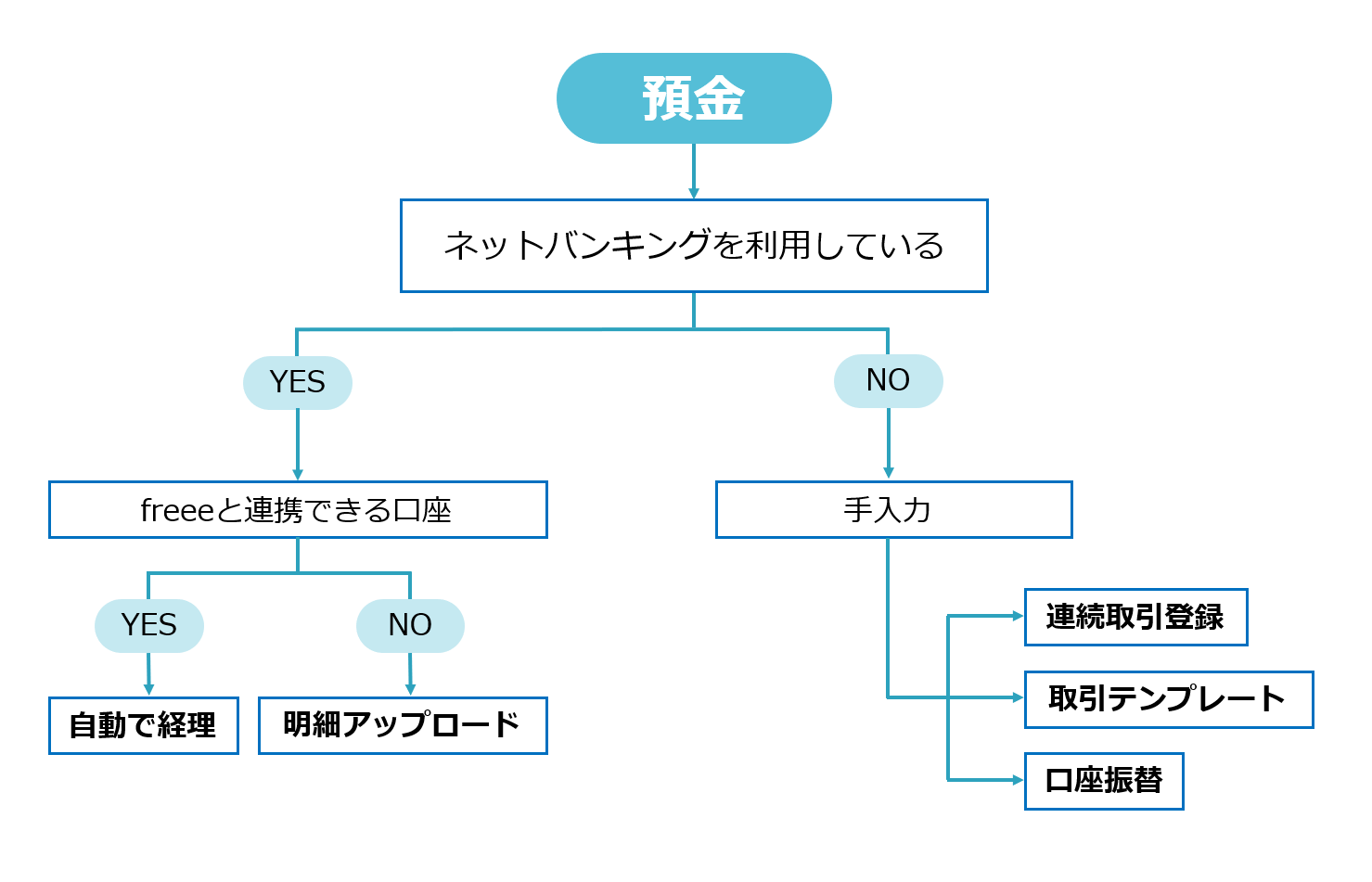 預金の入力をfreeeで行う際は、まずネットバンキングの利用があるか否かで入力方法を判断します。